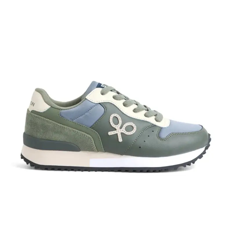 Estas zapatillas deportivas de estilo urbano combinan diseño contemporáneo y comodidad excepcional. Elaboradas con una mezcla de materiales sintéticos y gamuza, presentan un atractivo color verde oliva con detalles en gris y blanco que aportan un aire moderno y versátil. Su diseño incluye el logotipo distintivo en el lateral, que añade un toque elegante y distintivo. La suela de goma dentada garantiza una excelente tracción y durabilidad, mientras que el interior acolchado proporciona confort en cada paso. Perfectas para un look casual o sport chic, estas zapatillas son ideales para quienes buscan estilo, ligereza y funcionalidad en su calzado diario.